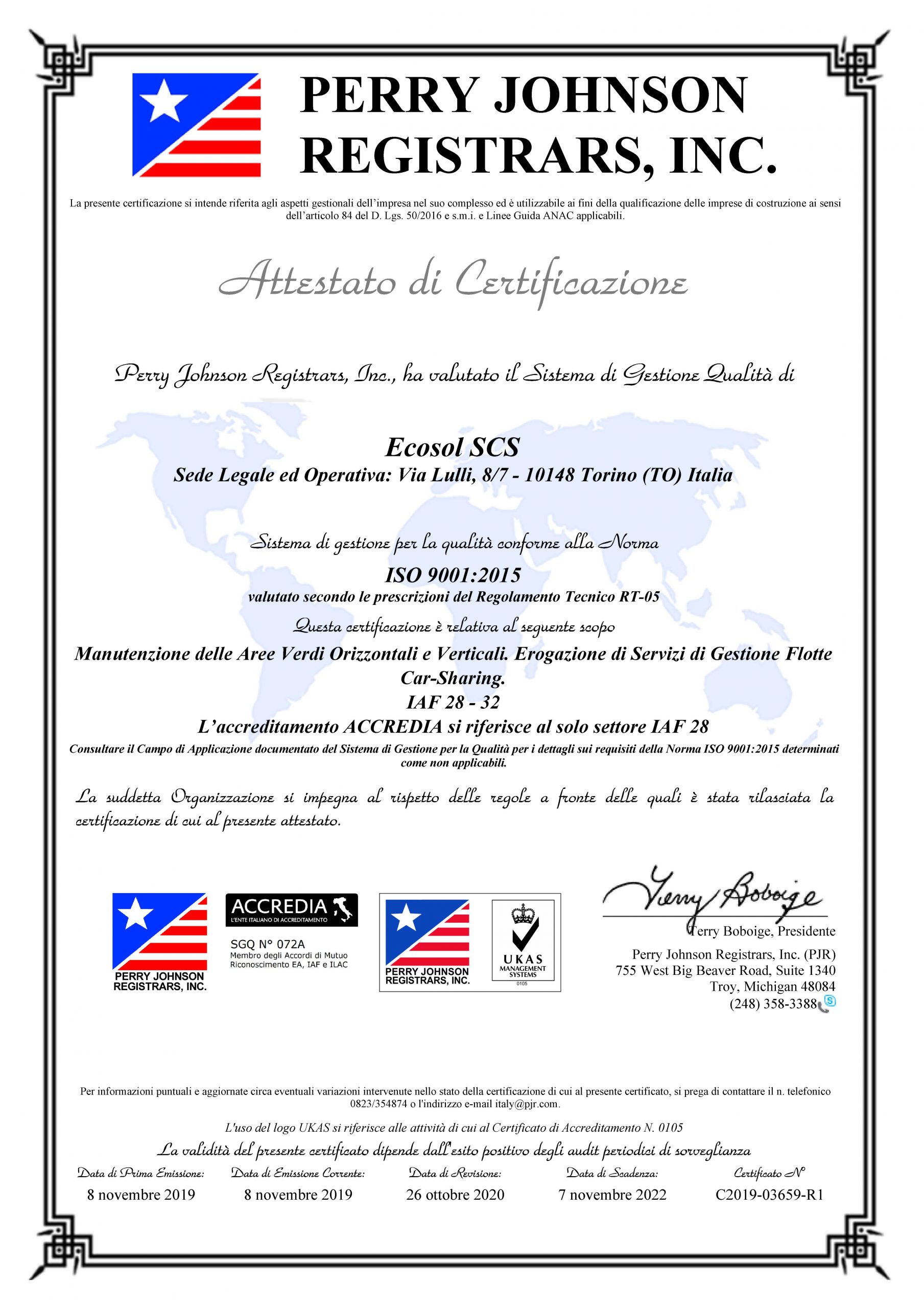 Nel 2019 a coronamento della crescita dei servizi proposti la Coooperativa ha ottenuto per la manutenzione del verde, per le potature e per la gestione della mobilità sostenibile le seguenti certificazioni: