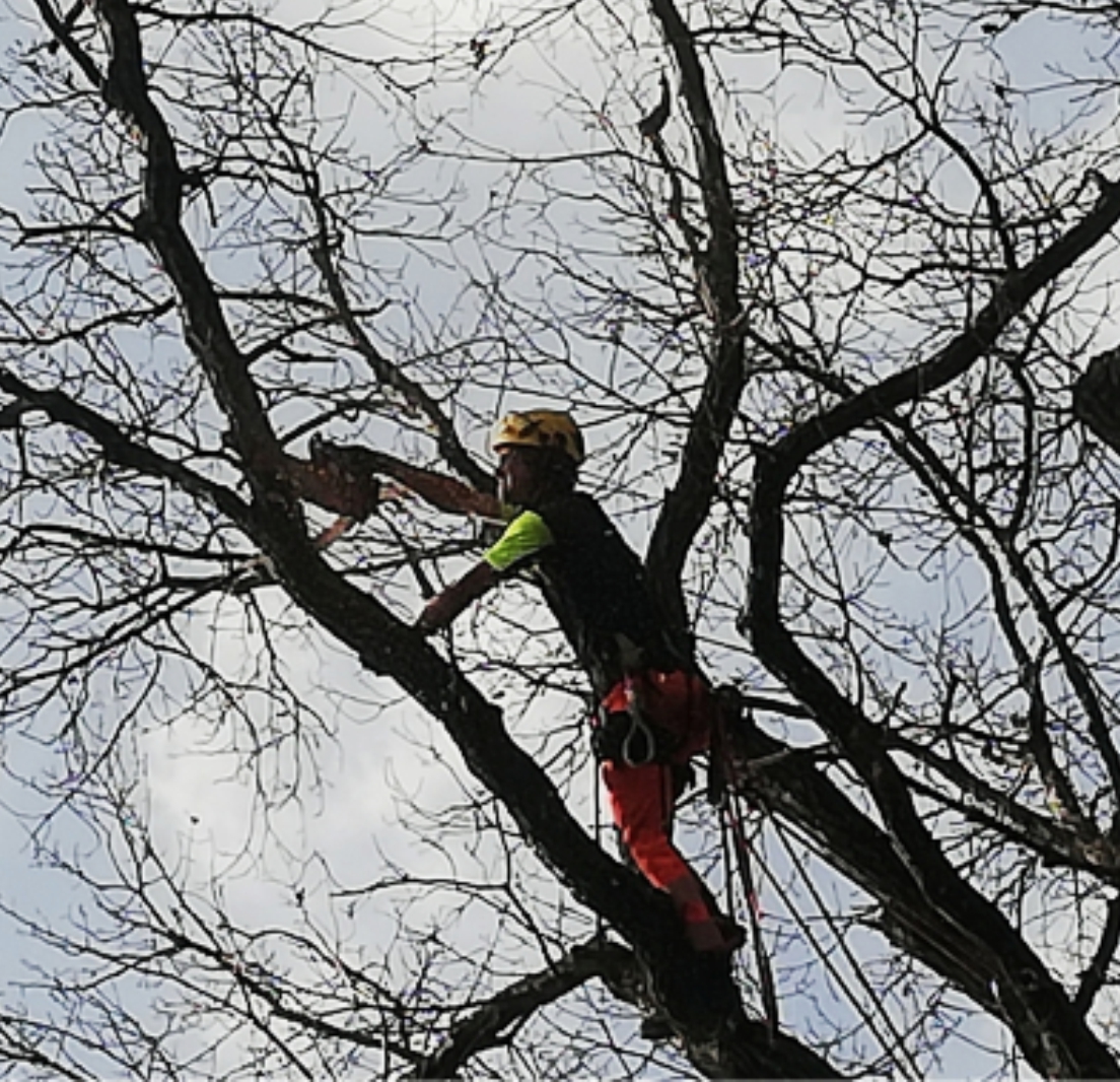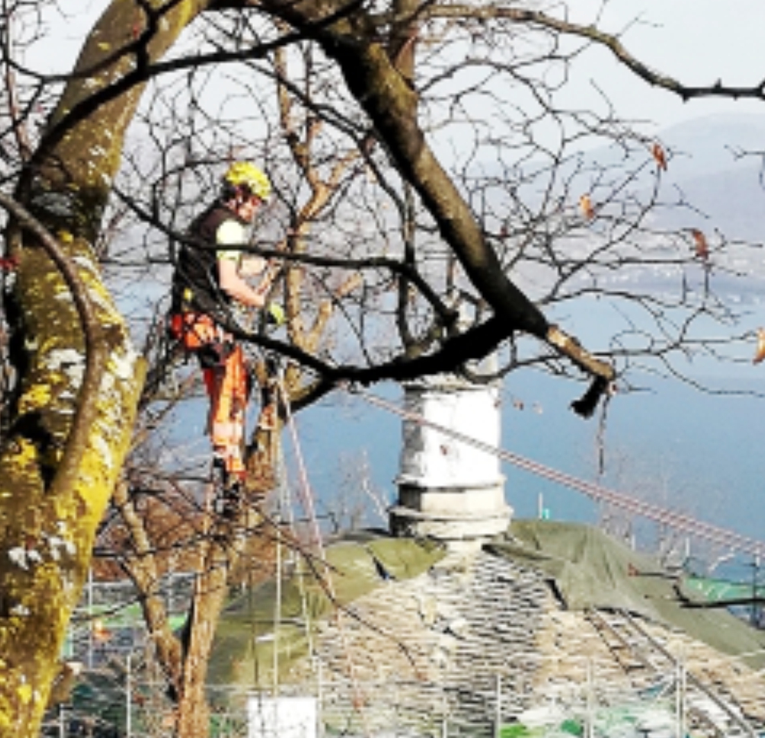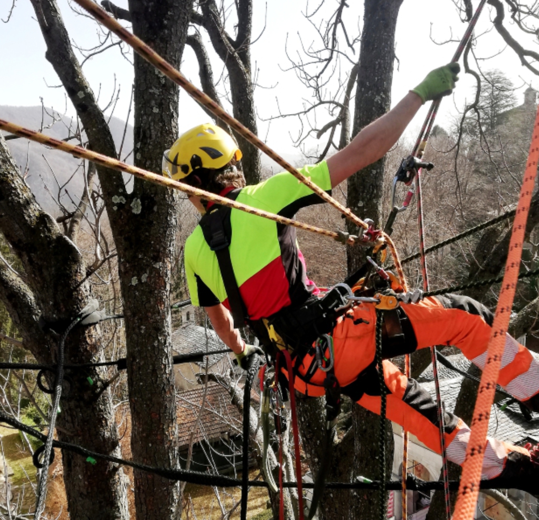 Abbiamo formato alcuni soci alle tecniche di tree climbing in modo da poter operare in ambiti non accessibili con piattaforme aeree.
